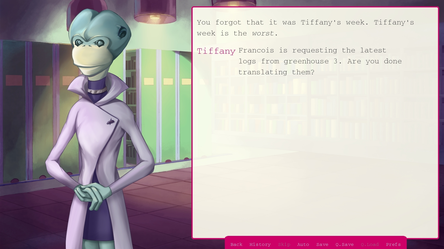 A sci-fi visual novel with simple point and click exploration.