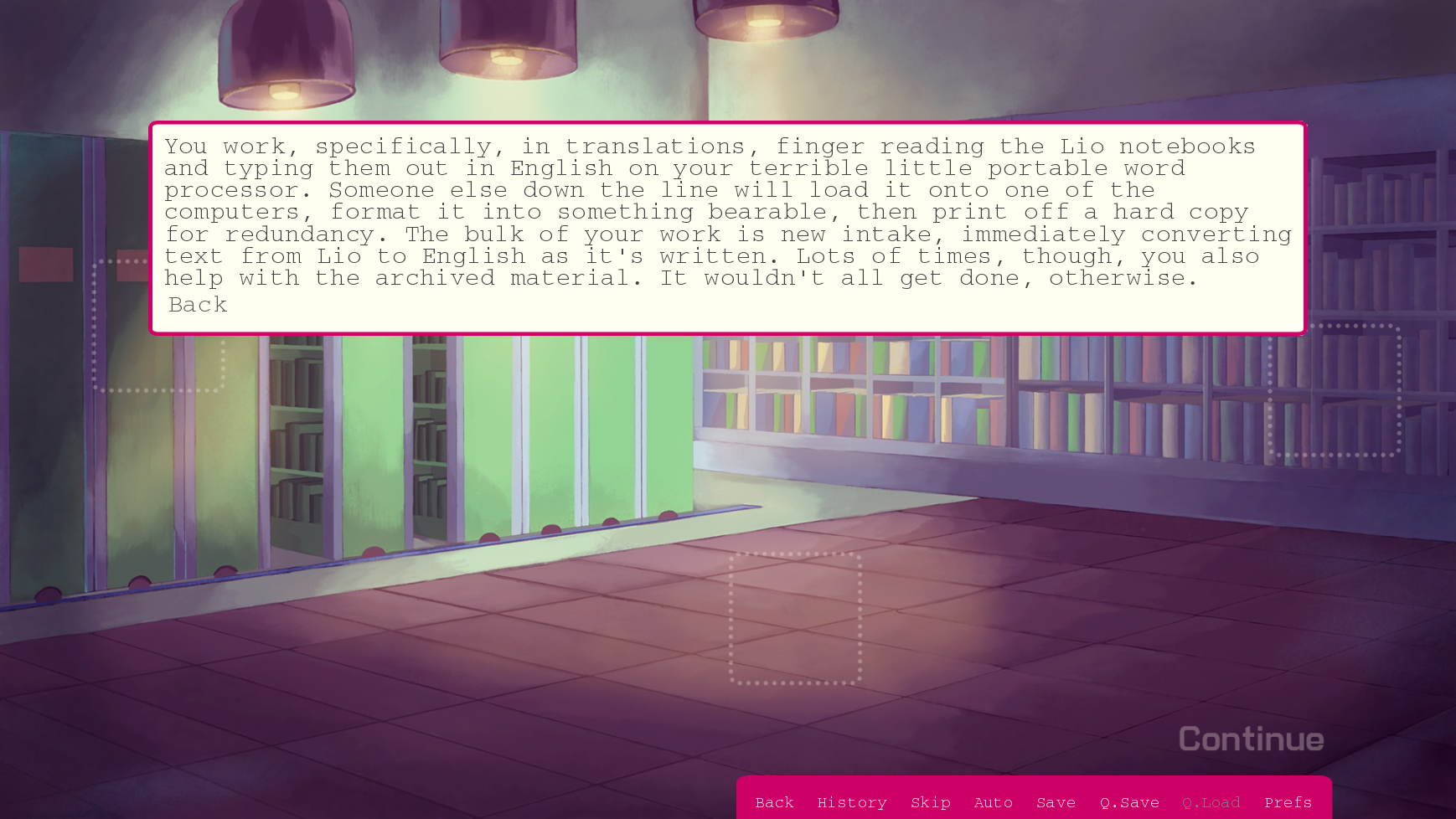 Lore codexes built into the point and click system were imperative to the investigative nature of If It Had to Perish Twice. The entries would change based on the knowledge the player had depending on their background.