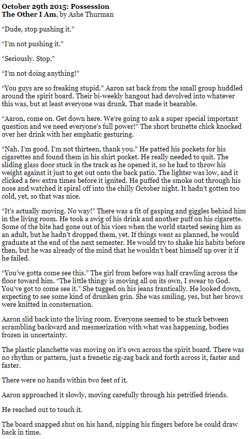 After a night of toying with the occult, a young man finds out an interdimensional being is now hitching a ride. Things get complicated when it appears the being is better at being him than he is.